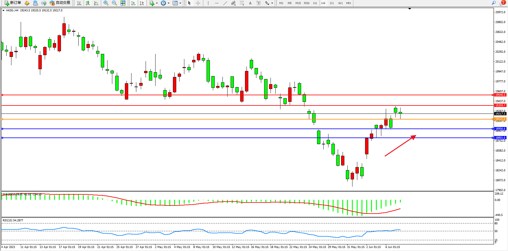 恒指HK50 4小时图