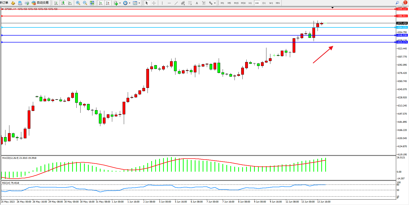 标普SP500——4小时K线图显示: