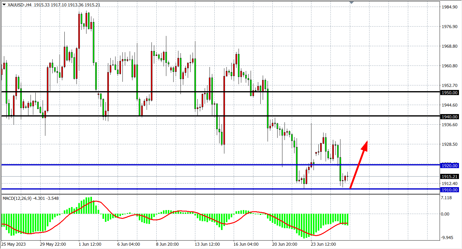 交易策略:1910上方看涨,目标 1940  1950