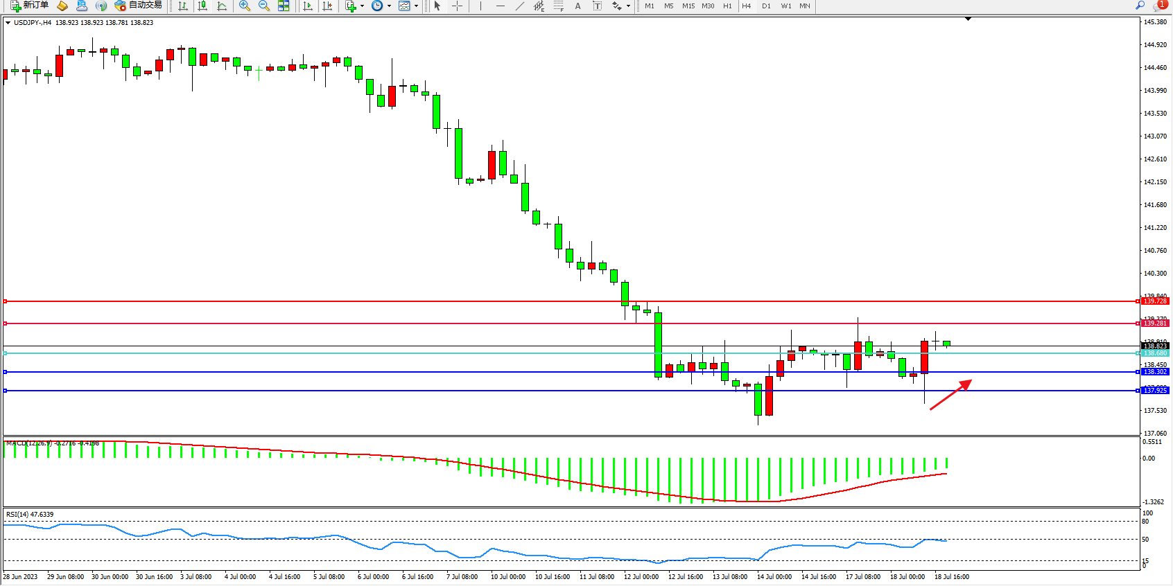美元兑日圆维持138.823附近震荡,投资者对于日元是否能继续上涨持怀疑态度,如果日本央行在7月份会议上维持收益率曲线控制政策不变,预计日元将会贬值。