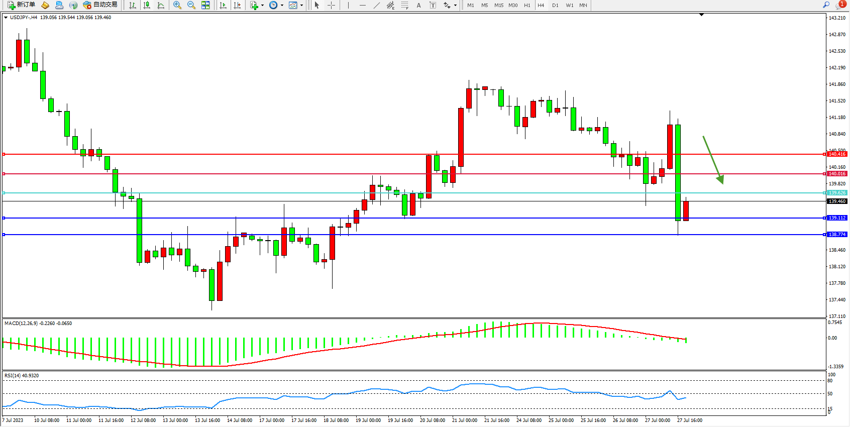 交易策略:139.626下方看跌,目标139.112  138.774