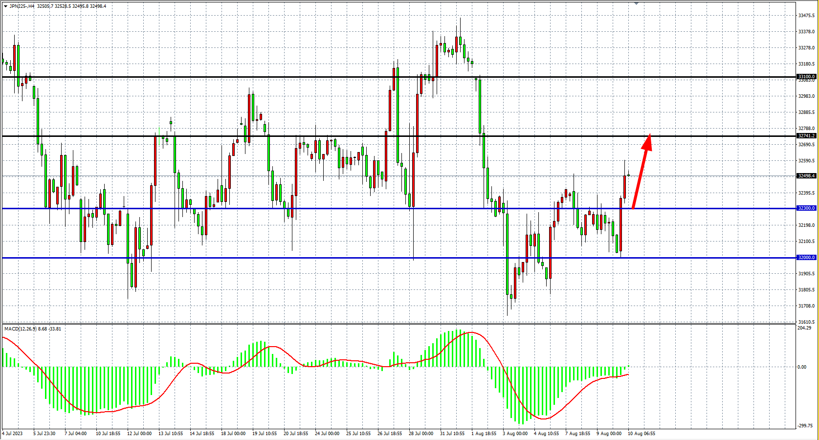 周四(8月10日)日经225收盘上涨281.50点,涨幅0.87%