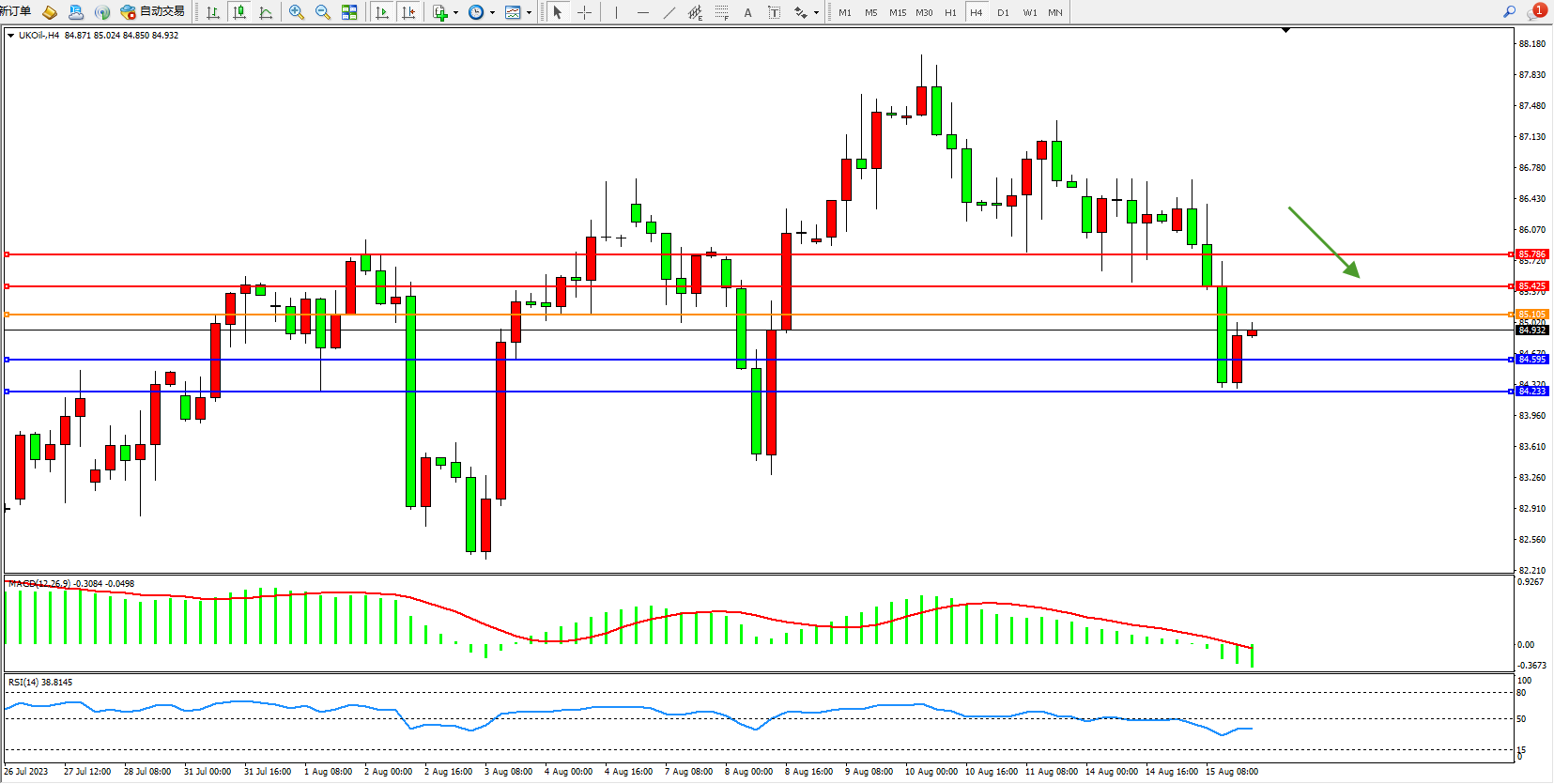 布油UKOil——4小时K线图显示:
