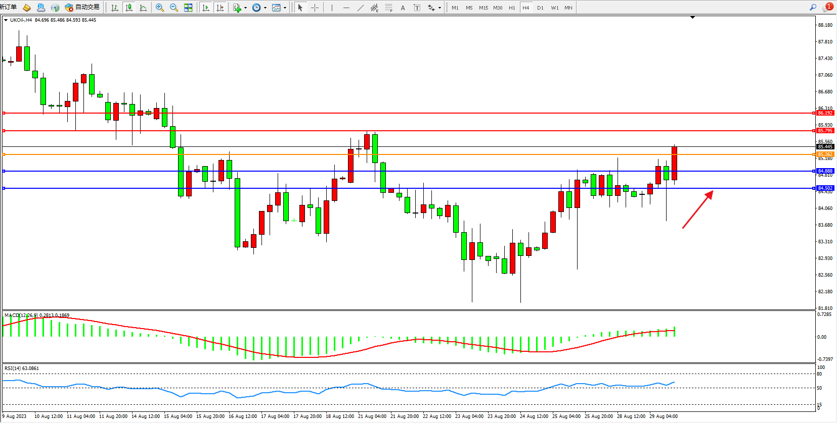布油UKOil——4小时K线图显示: