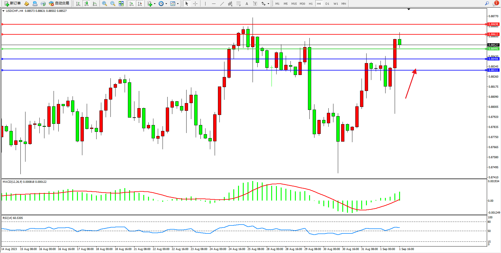 交易策略:0.88491上方看涨,目标0.88613  0.88698