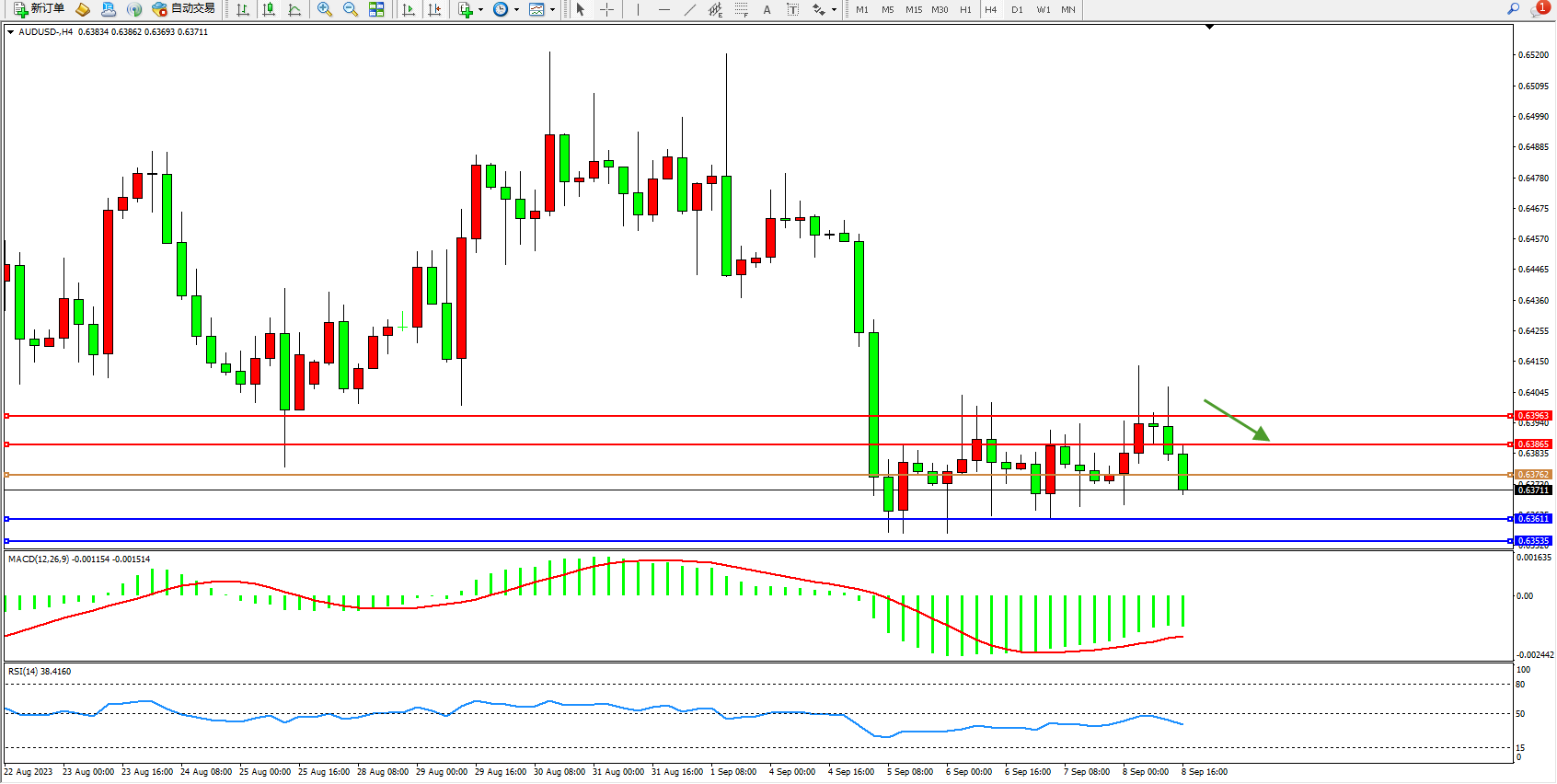 澳元美元AUDUSD——4小时K线图显示: