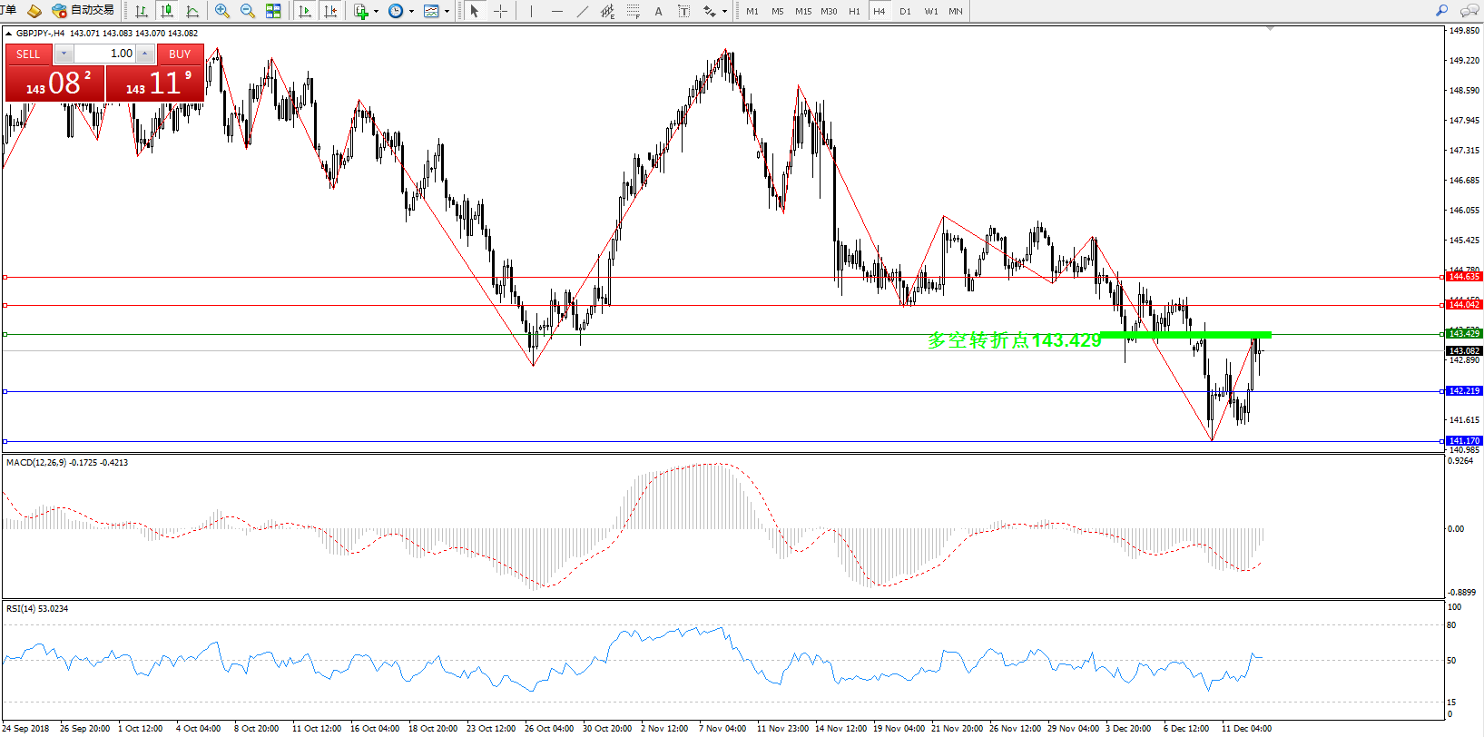 备选策略:143.429下方看跌,目标142.219141.170