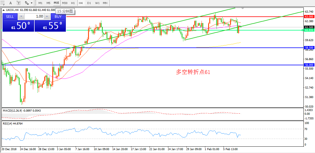交易策略:在61.00之下看跌,目标59.00    57.00