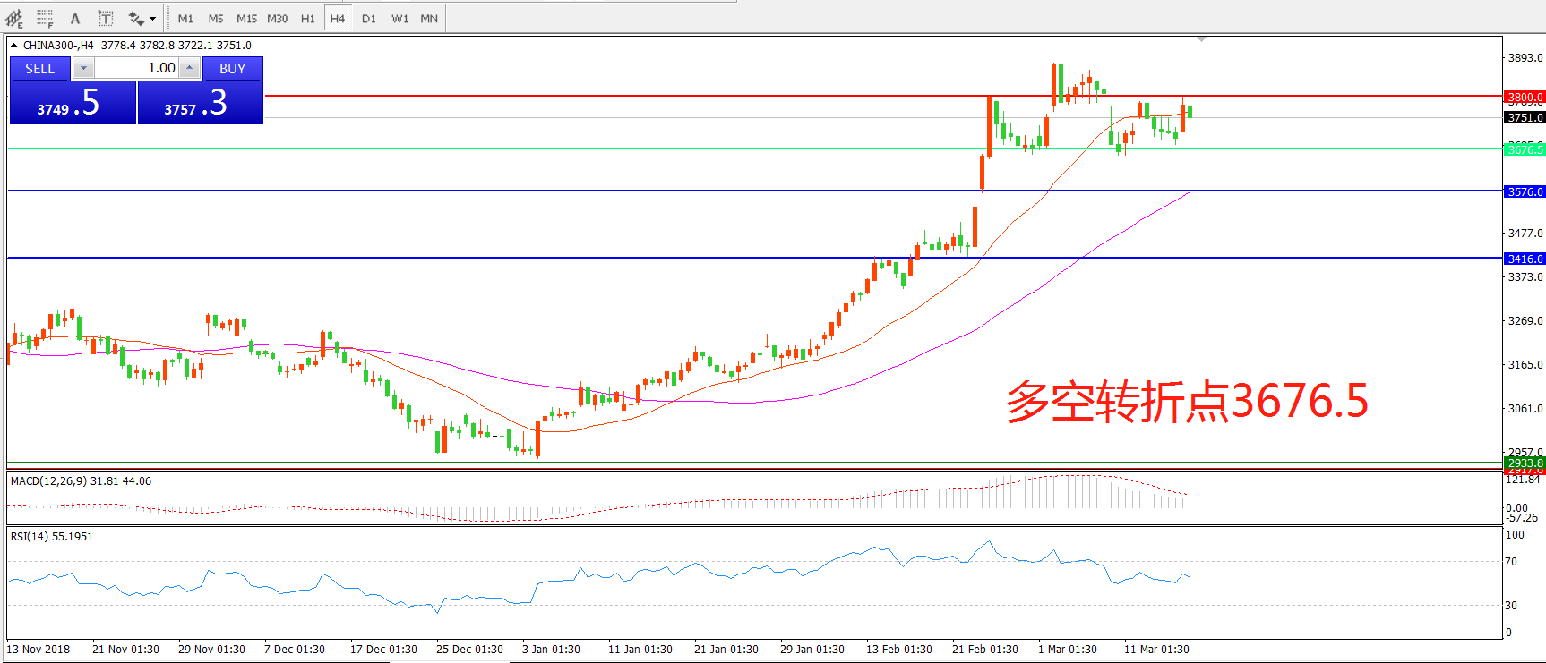 中华指数300CHINA3004小时图