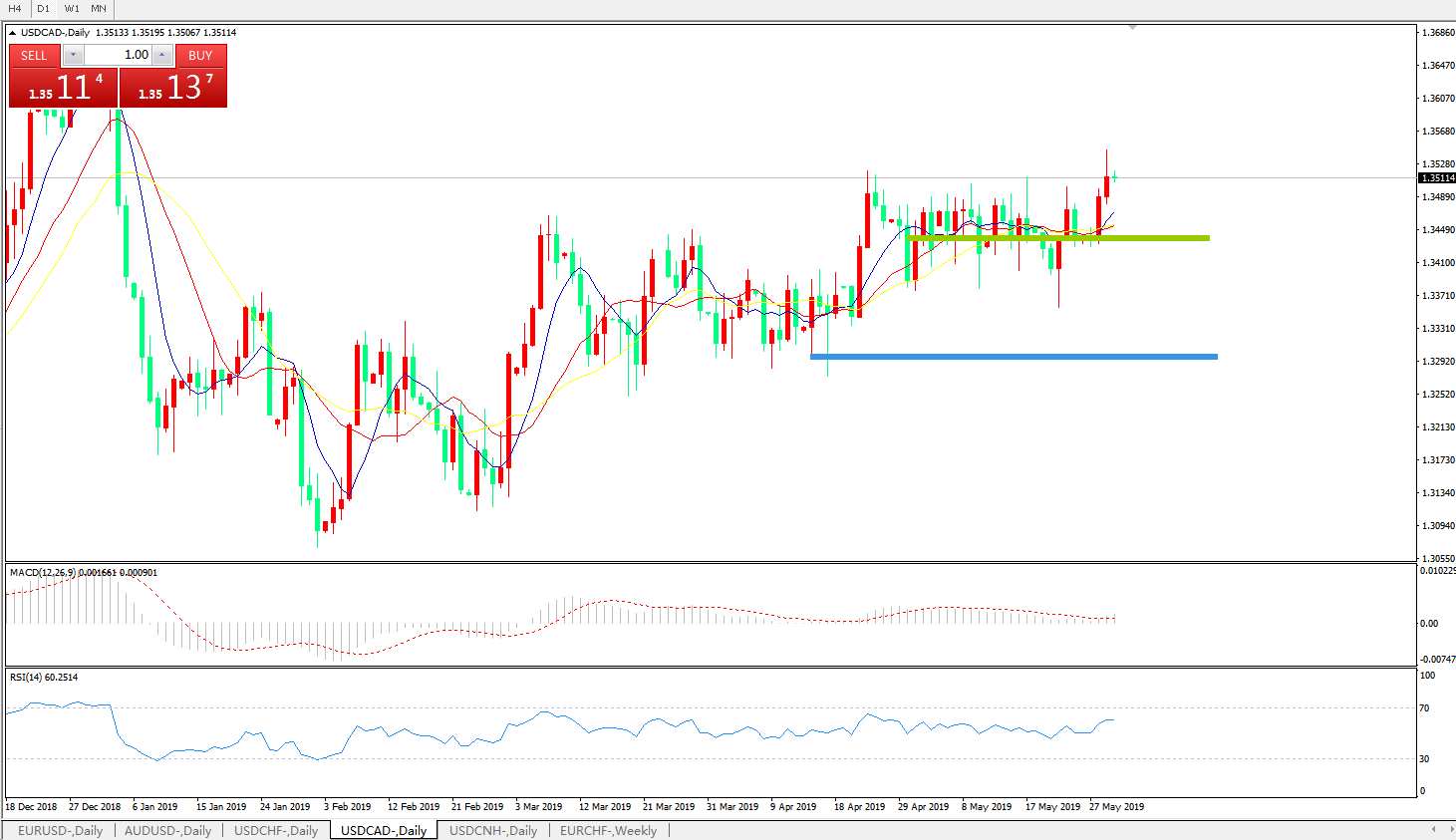 美元兑加元USDCAD    日线