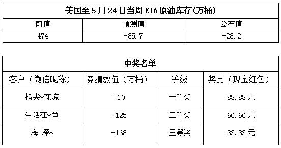 2019年5月第4期“EIA大竞猜活动的中奖结果已出,获奖信息如下: