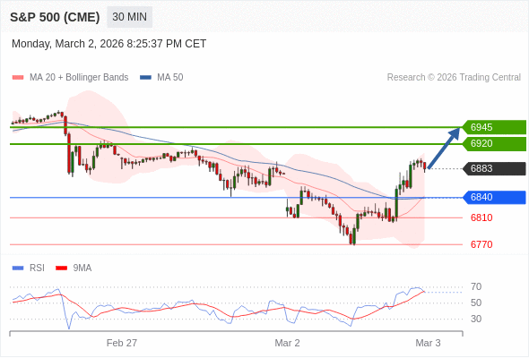 在 6840 之上,看涨,目标价位为 6920 ,然后为 6945 。