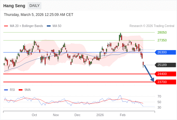 恒生指数 短线: 存在压力。