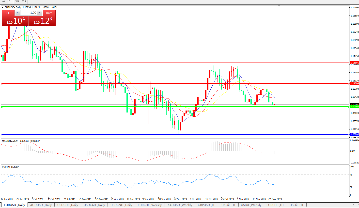 交易策略:1.1000上方看涨,目标1.1100、1.1190