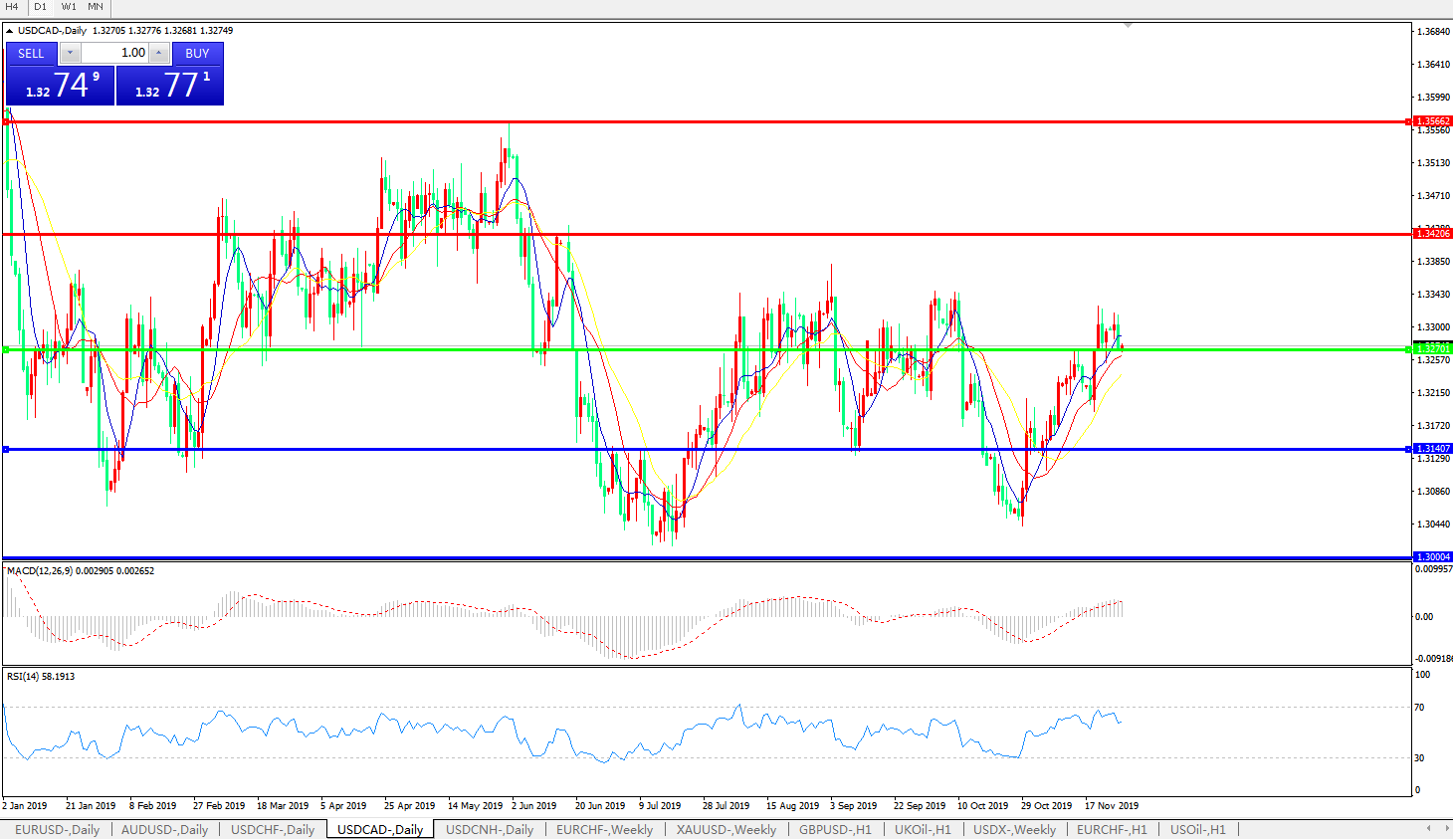 美元兑加元USDCAD    日线图: