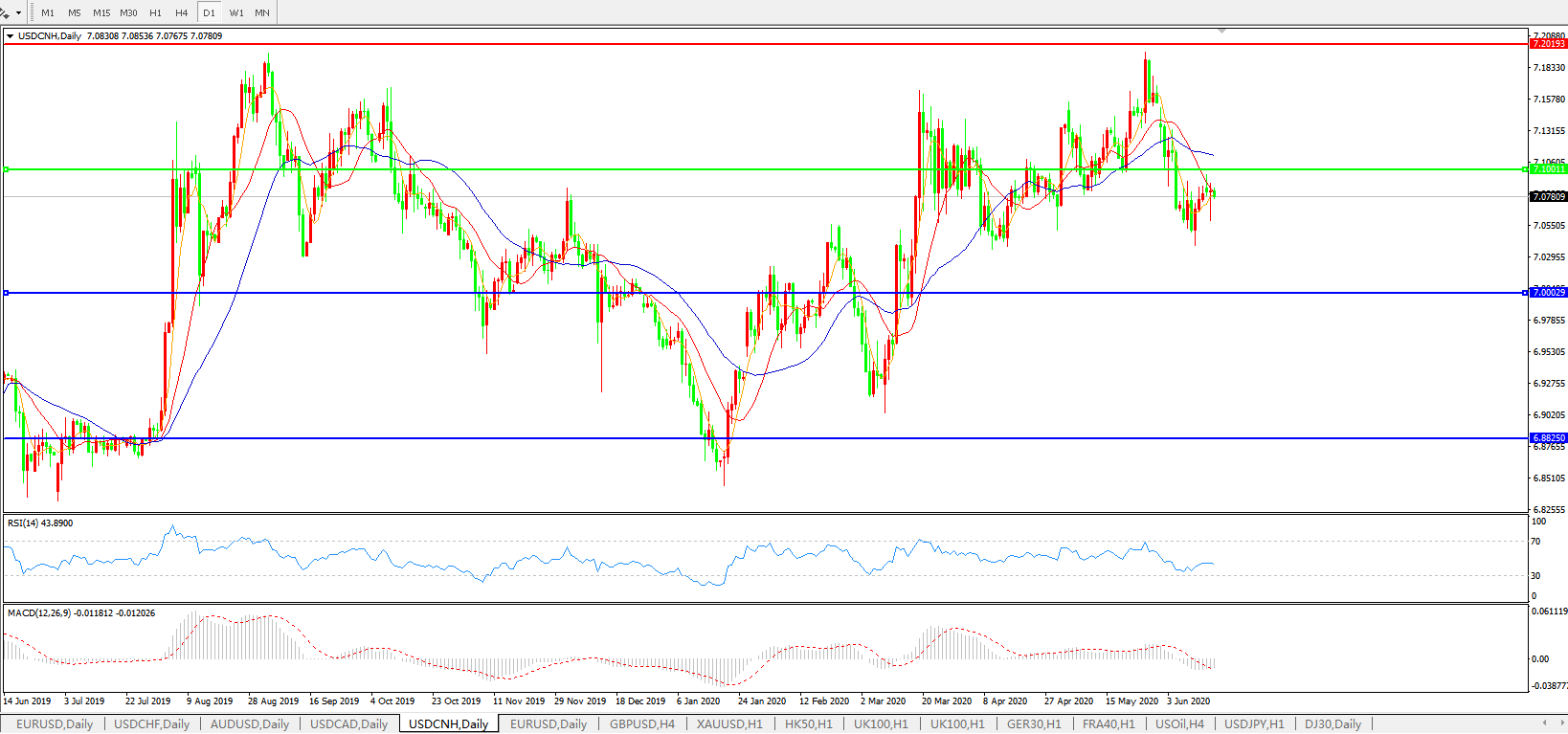 交易策略: 在7.1000之下,看跌,目标价位为7.0000,然后为6.8820。