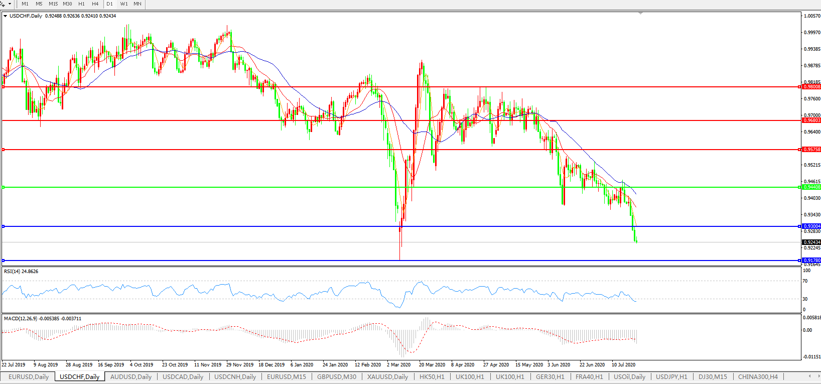 美元兑瑞郎USDCHF    日线图: