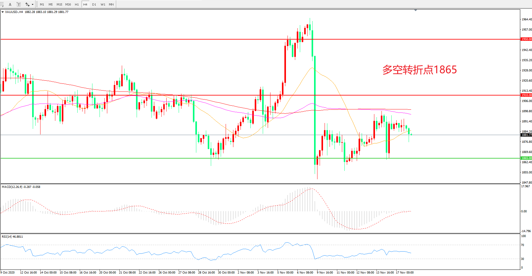 多空转折点:1865.00