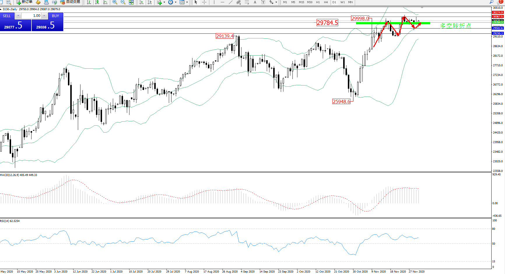 道琼斯指数12月2日(周三)收盘上涨59.90点,涨幅0.20%,报29883.79点。美国11月ADP就业人数实际公布30.7万,预期值43万,小非农”ADP不及预期预期,给美就业市场敲响警钟,美国就业增长步伐继续放缓。突显出周五非农就业数据面临的一些下行风险。这份报告在预测新冠病毒大流行时的政府数据方面做得很糟糕。市场对该报告的反应微乎其微,但也有轻微的避险情绪。美联储主席鲍威尔在周一(12月1日)发表讲话时称,近几个月来经济复苏的步伐放缓,而未来前景仍然极为不确定。鲍威尔表示,最近疫苗研发上的进展就中期而言是个好消息,但短期内经济仍存在重大挑战和不确定性。新冠病毒的传播是他最关注的近期风险。对于周五即将公布的11月非农就业报告。美国11月非农就业数据将保持平稳增长。由于经济保持回升态势,11月非农就业数据将保持平稳增长;不过,相对于此前几个月增速会继续放缓。