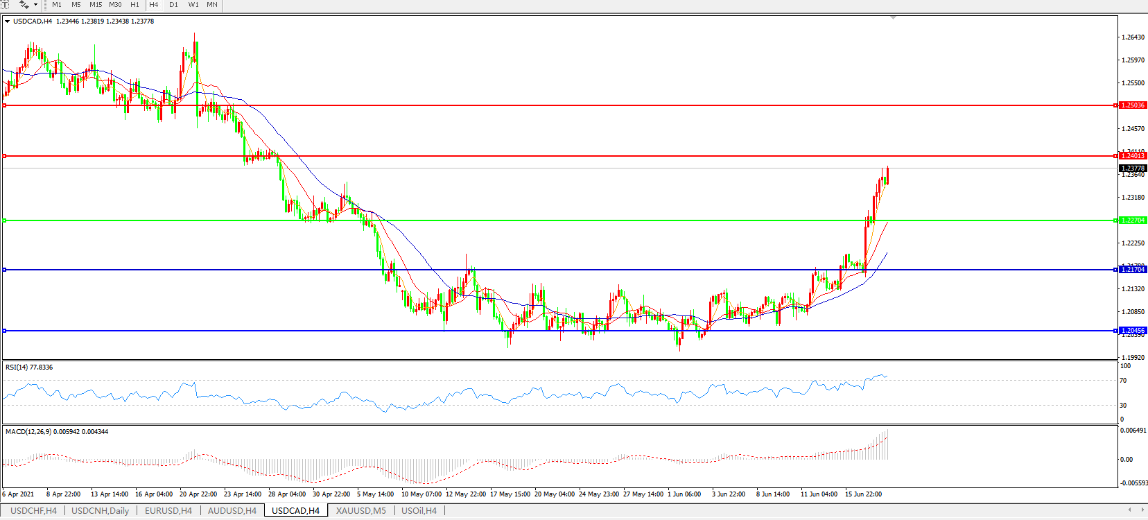 美元兑加元USDCAD 4小时图:
