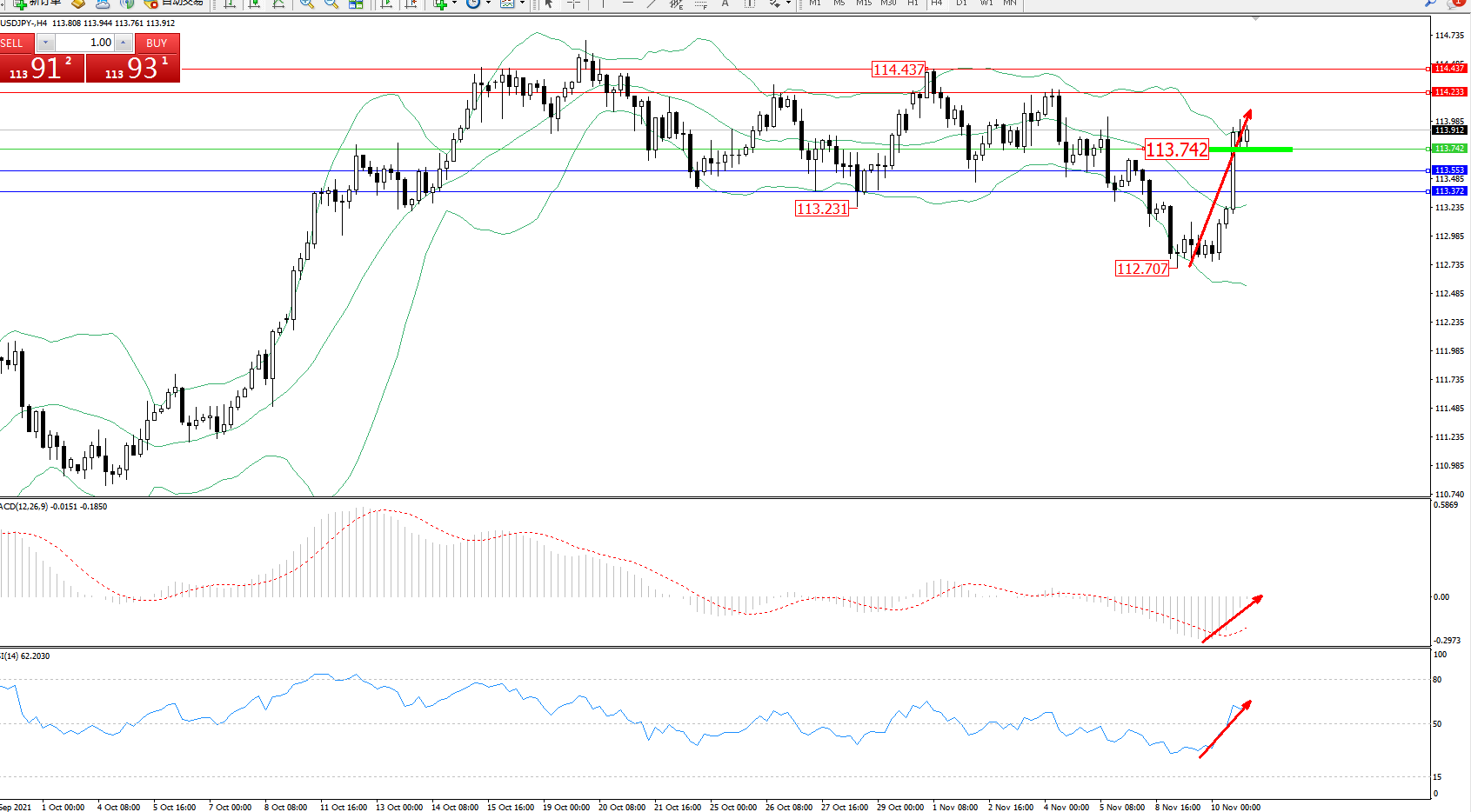 交易策略:113.742上方看涨,目标114.233、114.437