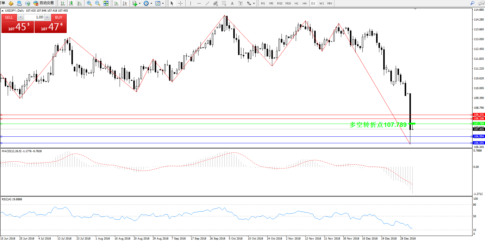 美元兑日元跌至八个月新低108.71,为20185月来未见水平,一度跌破109.00关键整数支撑位,避险情绪升温支撑日元买需,此外美债收益率的下滑也施压美元。美国10年期国债收益率也持续走低,触及11个月新低2.661%。极短线内,只要美国政府关门闹剧持续,避险情绪可能持续升温,从而支撑日元,需关注本周稍晚将公布的美国经济数据,包括ADP就业报告及非农就业报告等。