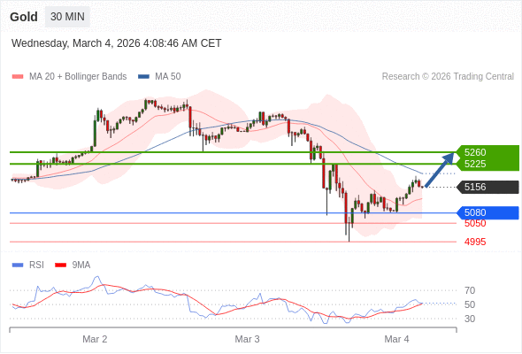 在 5080 之上,看涨,目标价位为 5225 ,然后为 5260 。